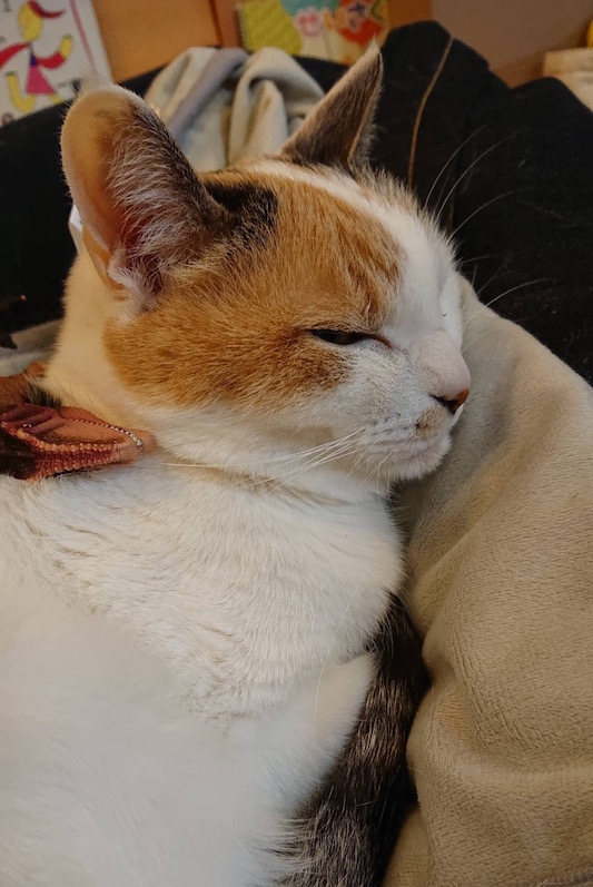 現在は病院猫を引退し、自宅でぬくぬく隠居生活を送っております。特にストレスもなく自由にやっていますので、病気の進行は比較的ゆっくりのようです。
