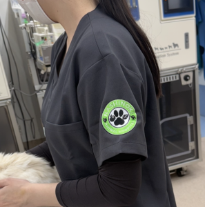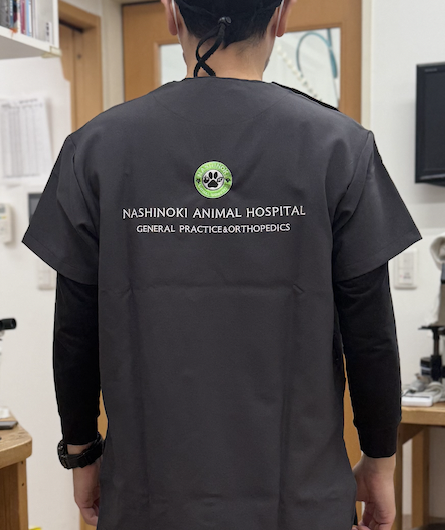 今回、獣医師ユニフォームとして獣医師みんなで同じデザインのスクラブをオーダーで作りました。現在、すでにこれを着て診療しておますが、やはり一体感が増したように感じ、作って良かったです。